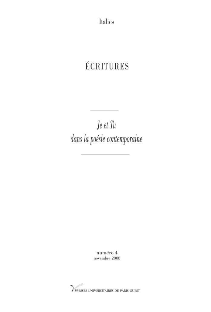 Écritures n°4/ Je et Tu dans la poésie contemporaine.